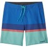 Die Patagonia Baggies Shorts ist eine lässig geschnittene Freizeithose aus recycelten Fischernetzen.Die Sommershorts hat einen weich unterlegten, elastischen Bund, den du enger stellen kannst. Die Taschen sind mit einem Netzfutter ausgestattet, durch das das Wasser abfließen bzw. frische Luft eindringen kann.